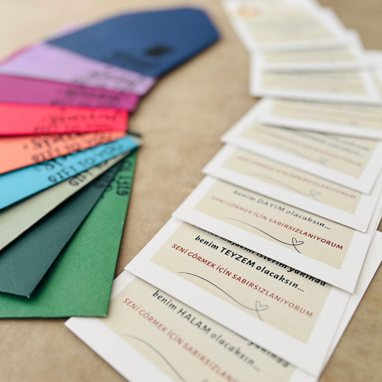 Kartlarımızın bir yüzünde yer alan bebek ultrason fotoğrafı ile sevdiklerinize ilk ip ucunu verirken, diğer yüzünde yer alan duygu dolu bir yazı ile de kendilerine “Baba-Teyze-Hala-Amca-Dayı-Anneanne-Babaanne-Dede” olacakları müjdesini verebilirsiniz.