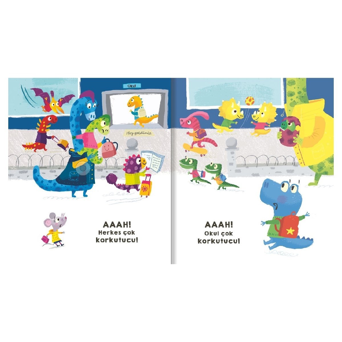 Okulun ilk günü. Lula Bell ve Brain Fitzgerald okula gitmek istemeyen Fare Öğretmen ve Minik Dinozor’un neler hissettiğini eğlenceli bir dille hikâye ediyor.