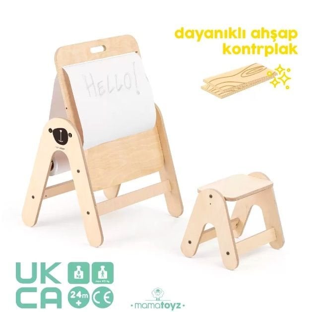 Bu Montessori ahşap masa, çocukların bağımsızlıklarını ve yaratıcılıklarını geliştirmelerine yardımcı olur. Tek bir vidayla kolayca yazı tahtasına dönüştürülebilir. Üzerine sonsuz rulo kağıt takılabilir, bu da çocuklara kesintisiz çizim ve boyama alanı sunar.
