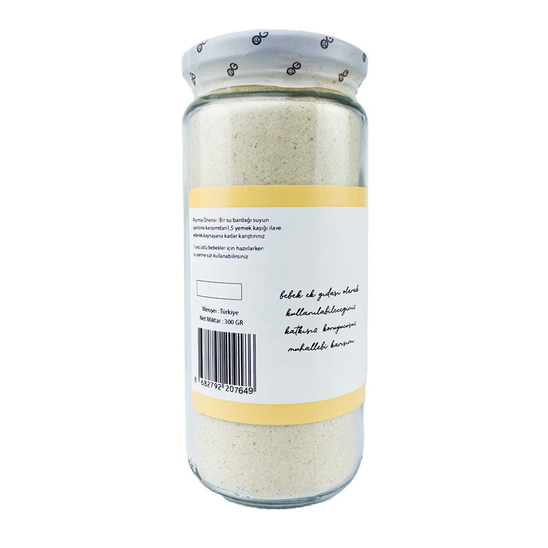 Pişirme Önerisi: 1 su bardağı suyun içerisine karışımımızdan 1.5 yemek kaşığı ilave ederek kaynayana kadar karıştırınız. 1 yaş üstü bebekler için hazırlarken su yerine süt ile yapabilirsiniz.