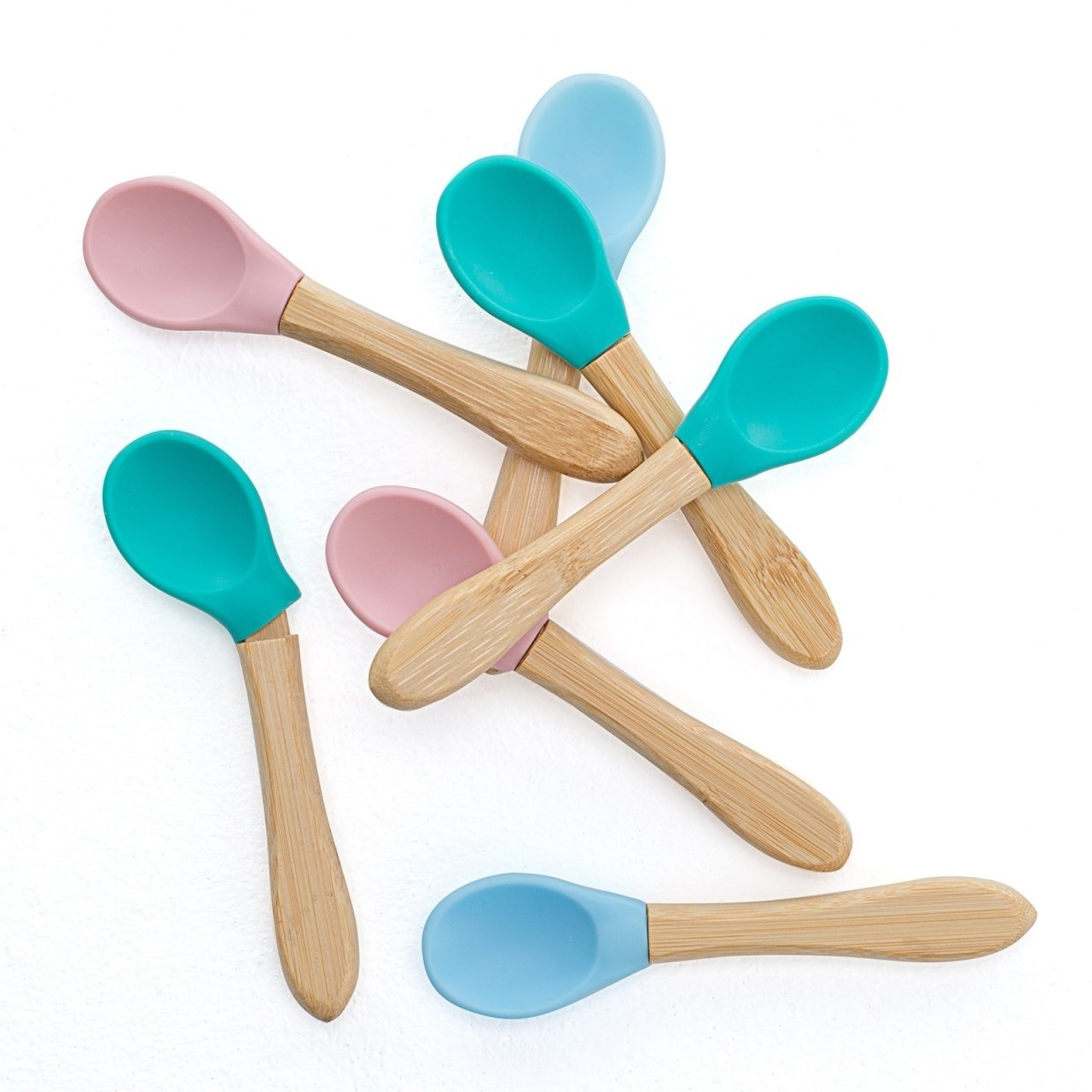 Oioi Bambu Saplı Silikon Kaşık 2li Aqua Green/Mineral Blue