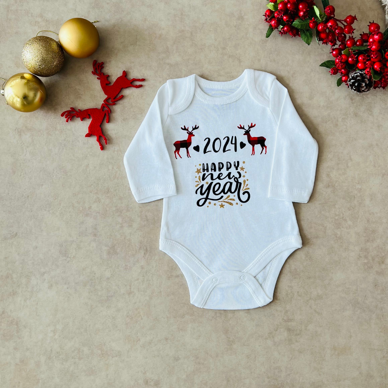 My First New Year - Özel Tasarım Bebek Body/Zıbın Baby Bodysuit Kısa Kollu - 1 yaş