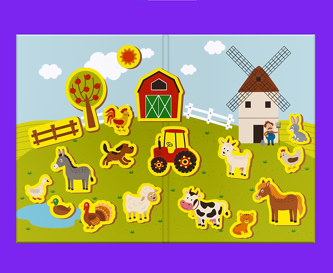 18 adet ahşap ve mıknatıslı çiftlik figürünü hazırladık ve kocaman bir kitap gibi açılan çiftlik temalı manyetik oyun alanına yerleştirdik. Çocuklar bu kocaman oyun alanını kullanarak hayallerinde oluşturdukları çiftlikleri oyunlarına taşıyacaklar.