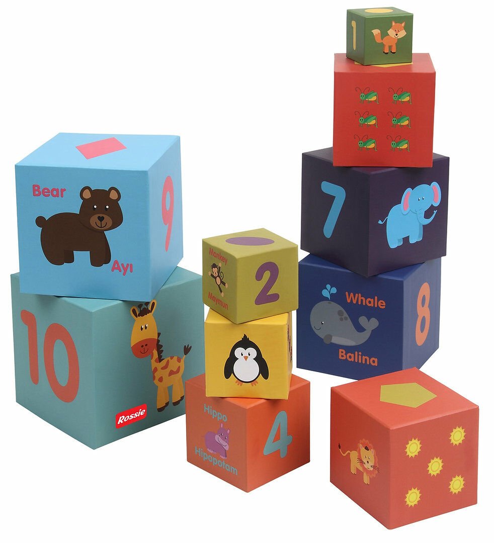 -İç içe geçe 10 kaptan oluşan oyuncak parçalarla hayal gücünde sınır yok.