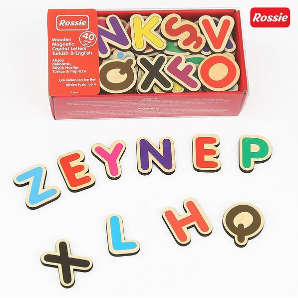 Üstelik tamamının arkası mıknatıslı ve doğal ahşaptan yapılmış. İster mıknatıslı tahtada, ister mutfakta buzdolabının üzerinde oynayabilir.